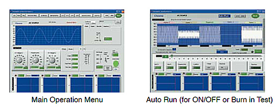 另有附操作软体,可编程长时间烧机电源变化或ON/OFF循环测试,还可纪录下烧机过程中输入电源量测参数的变化,储存在档案中供分析。它适合于一般商业产品、航空电子领域、军事上测试的运用、从实验桌上测试到大量生产单位皆可使用。