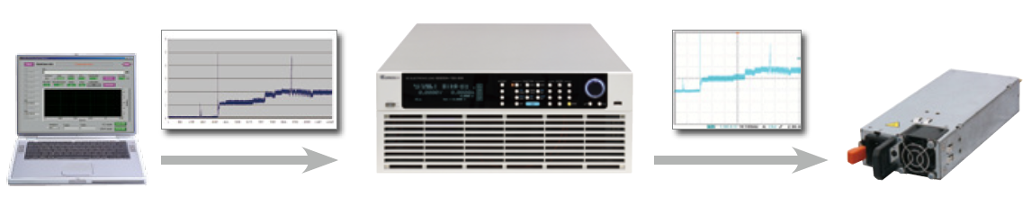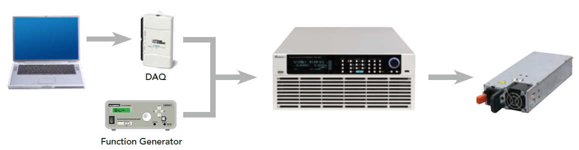 除一般的定电流、定电压、定功率、定电阻拉载模式外,在拉载任意波形时,一般传统的方式是透过电脑将预先储存的波形透过DAQ卡或者单纯透过任意波形产生器将波形送给电子负载进行拉载,进而达到拉载任意波形的目的,如下图所示。
