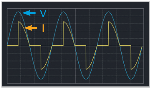针对整流性负载或非线性负载,如传统逆变器、UPS、整流开关、声光调控设备、具变频功能的机电装置等,Chroma 63800R系列提供专门的CC Rectified和CS Rectified模式,依定电流或定视在功率之测试需求,额外设定拉载的CF值制造尖波电流,伴随高稳定度的Slew Rate控制,精准模拟出各类型非正弦波的拉载电流。