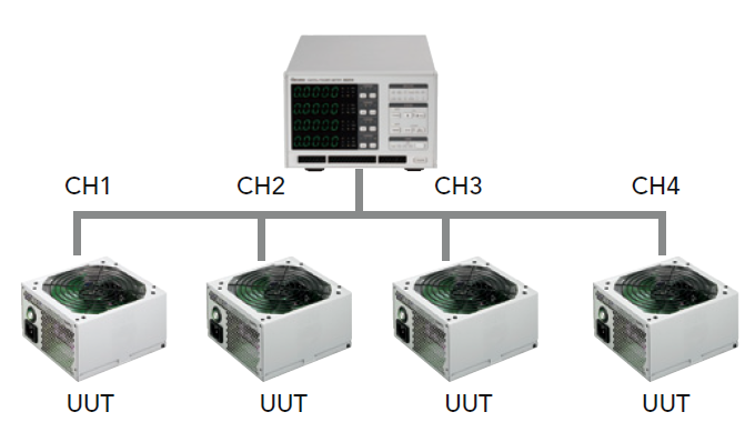 选择1P2W单相两线式最多可同时量测4个待测物(66204),每个模组最小电流量测档位5mA,可符合空载功率(<30mW)量测以及能源之星(Energy Star)、IEC62301、EN50564对于功率量测要求。因此非常适合应用于电脑伺服器、机上盒、电视、LED照明电源供应器、电池充电器等产品测试。