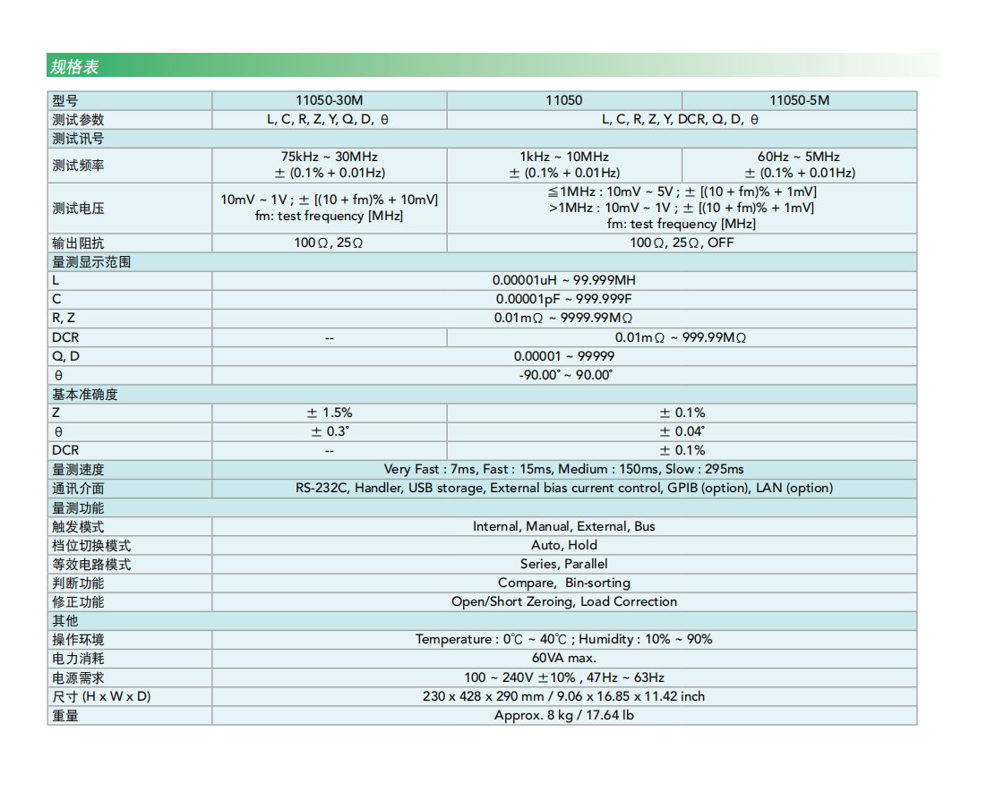 名  称:高频LCR表MODEL 11050系列