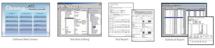 Chroma 8000自动测试系统配备了优化的标准测试项目,针对光伏逆变器,符合IEEE1547、1547.1、UL1741、中国国标GB/T 19939、CGC/GF004的电气初步测试要求。用户只需要确定测试条件和规格,即可以用标准的项目进行测试。