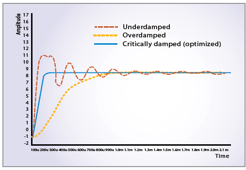 为缩短测试时间,52400系列电源量测单元皆设计为快速反应、高速电压与电流输出。然而,待测物(DUT)的阻抗、治具或电源线都有可能成为整个控制回路在电压或电流输出模式下不稳定的潜在因素。一个不稳定的控制回路可能造成过饱和震荡,甚至损坏待测物。因此,使用者可能需要在测试治具中增加电容器,让系统重新获得稳定。