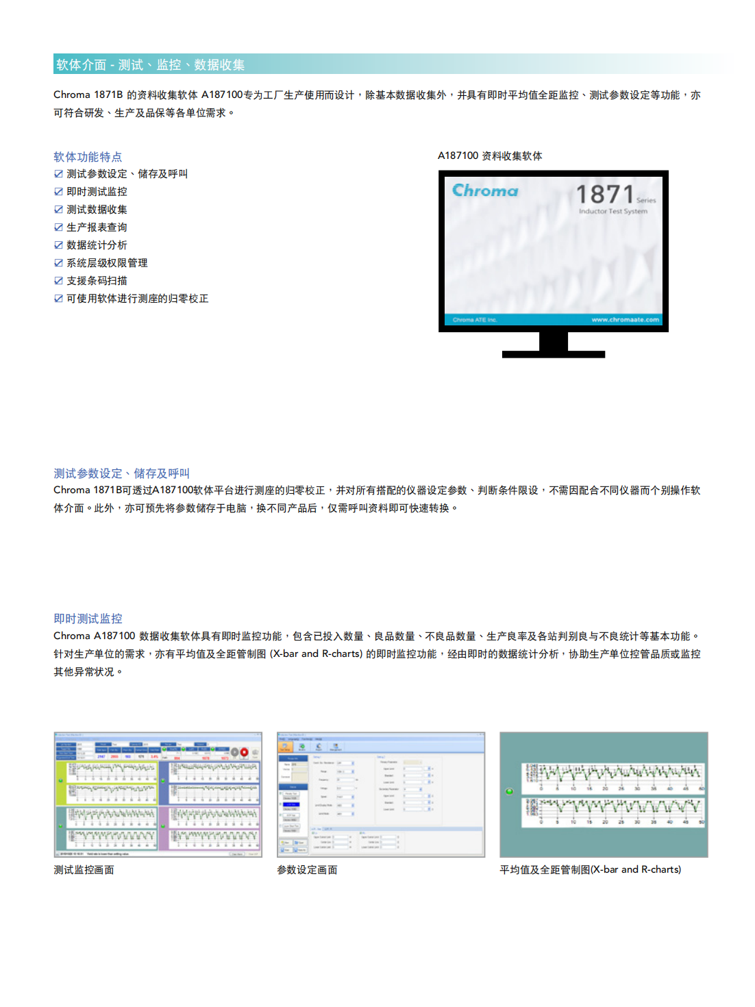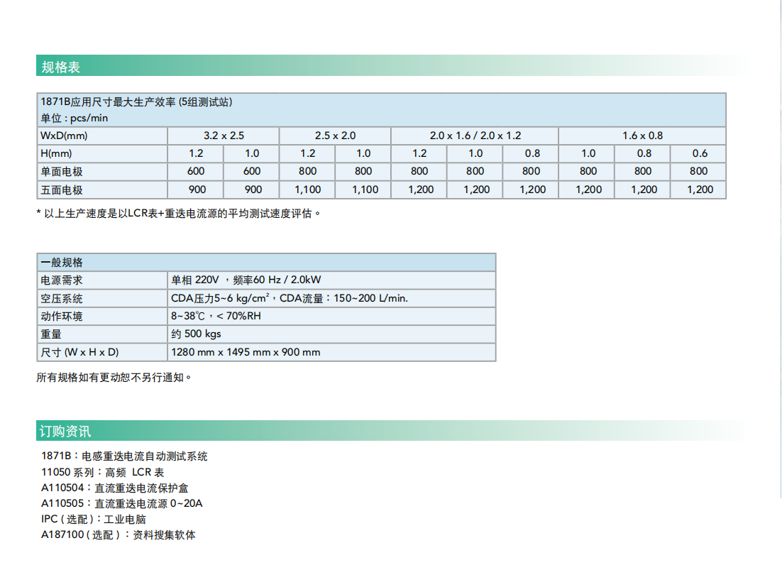 Chroma 1871B是专门为晶片型功率电感特别针对重迭电流测试所设计的自动化测试生产设备,主要因应全球车用市场严格的安全标准要求,替使用于车用产品的电子元件做更完整的功能、规格之检测。