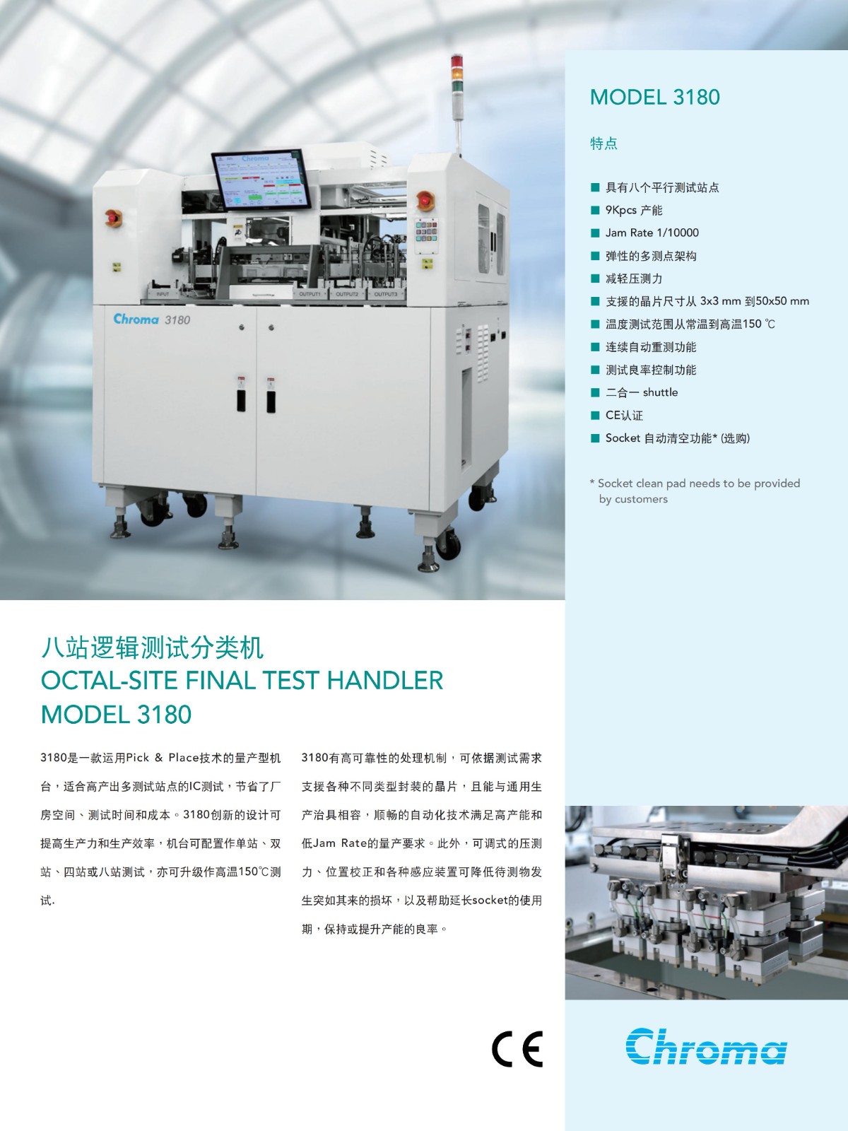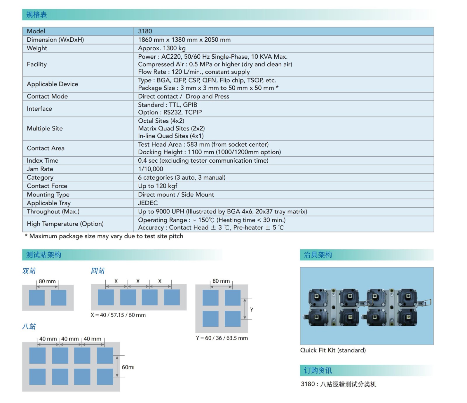 3180是一款运用Pick &Place技术的量产型机台,适合高产出多测试站点的IC测试,节省了厂房空间、测试时间和成本。